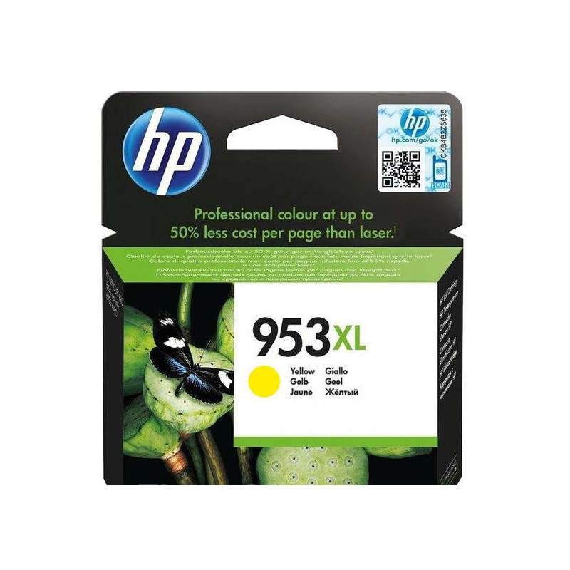 HP 953XL žlutá inkoustová kazeta originál - F6U18AE Originální inkoustová kazeta HP OEM. No: F6U18AE Barva: žlutá Výkon: 1600 stran Kompatibilita: HP Officej...