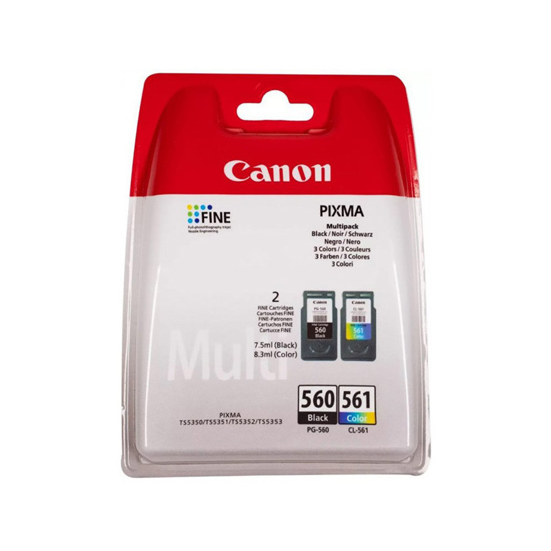 Canon PG-560 / CL-561 Multipack - 2-balení - černá, barva (azurová, purpurová, žlutá) - originální - blistr se zabezpečením - inkoustová cartridge - pro PIXMA TS5350, TS5351, TS5352, TS5353, TS7450, TS7451