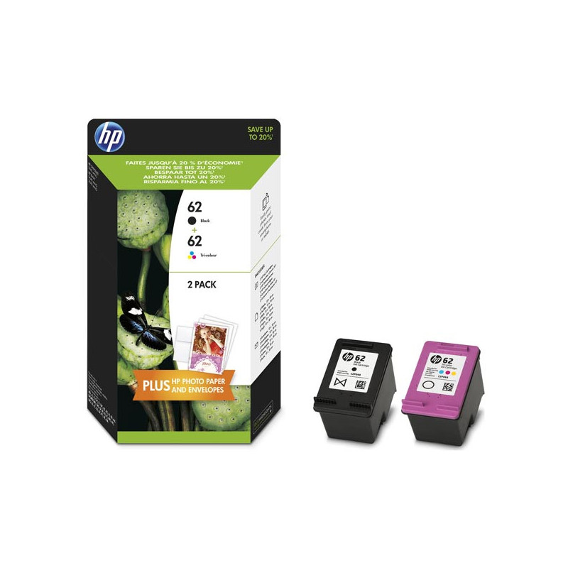 HP 62 Twin Pack - 2-balení - černá, barva (azurová, purpurová, žlutá) - originální - černá, barva (azurová, purpurová, žlutá) - inkoustová cartridge - pro Envy 55XX, 56XX, 76XX; Officejet 200, 250, 252, 57XX, 8040
