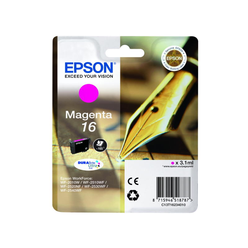 Epson originální ink C13T16234022, T162340, magenta, blistr, 3.1ml, Epson WorkForce WF-2540WF, WF-2530WF, WF-2520NF, WF-2010