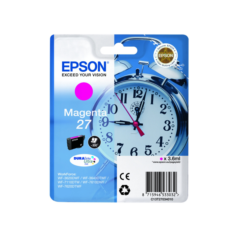 Epson originální ink C13T27034022, 27, magenta, 3,6ml, Epson WF-3620, 3640, 7110, 7610, 7620