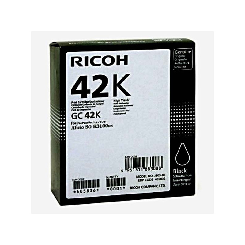 Ricoh originální gelová náplň 405836, black, 10000str., GC 42K, Ricoh SG K3100DN, Aficio SG K3100DN