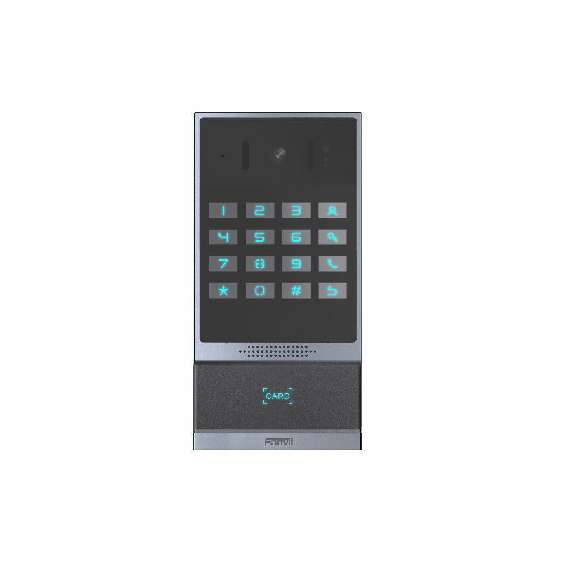 Video vrátný Fanvil i64 je postavený na základě protokolů SIP a ONVIF a integruje výkonné funkce řízení přístupu, interkomu a zabezpečení. Nový designu hliníkové slitiny a podsvícené numerické klávesnici, nabízí i64 vysoce kvalitní elegantní vzhled. Díky vysokému stupni ochrany IP66 a IK07 je zařízení vodotěsné, prachotěsné a odolné proti kolizi ve většině venkovních prostředích. i64 umožňuje uživatelům uskutečňovat audio/video hovory pomocí tlačítka rychlé volby a 2 MPx kameře a dosáhnout kontroly přístupu pomocí různých režimů. Díky bohatým vstupním a výstupním rozhraním lze i63 snadno propojit s dalšími bezpečnostními zařízeními a přizpůsobit je různým řešením v bytech, komerčních budovách, komunitách a průmyslových parcích.
