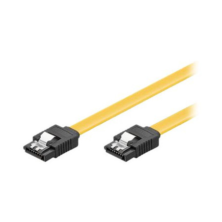 SATA 3.0 datový kabel s kovovou západkou proti vytažení. - Podporuje rychlost 1.5GBs / 3GBs / 6GBs - Kovová západka proti vytažení konektoru - EMI - Ohebný kabel - Bezpečný přenos dat - RoHS compliant - Zpětně kompatibilní se SATA 3 Gb/s a 1.5 Gb/s. - Délka 0,5m