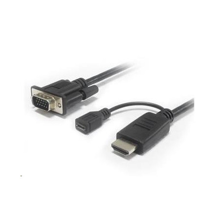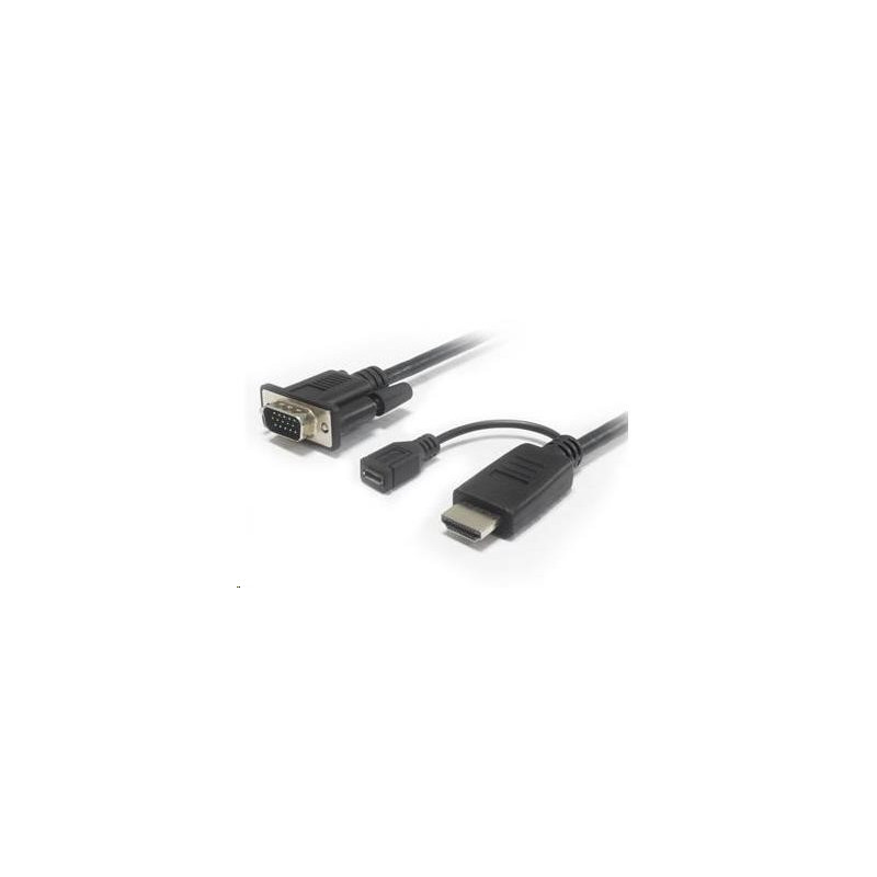 Kabelový převodník HDMI na VGA s napájecím micro USB konektorem - černý