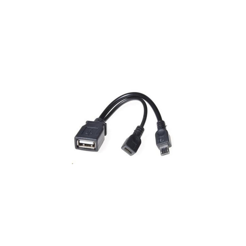 Tento kabel se zapojí konektorem Micro USB do chytrého telefonu, který podporuje funkci OTG. Do konektoru USB A/female se zapojí myš, flashdisk, externí disk, čtečky karet a další přenosná paměťová média. Do konektoru micro USB/female se zapojí USB nabíječka mobilních telefonů a umožňuje posílení napájení.