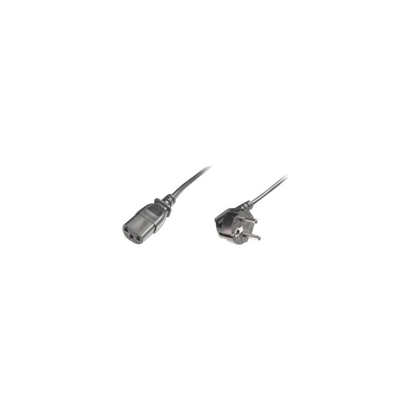 Napájecí kabel v černém provedení pro počítač nebo monitor. Třížilový kabel je zakončený standardní přístrojovou zástrčkou.