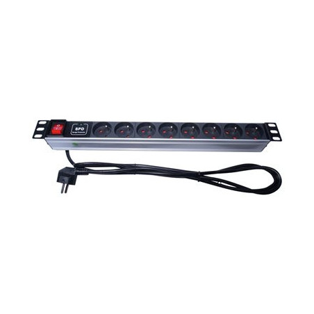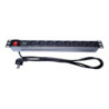 PremiumCord Panel napájecí 1U do 19" racku, 8x230V, přepěťová ochrana, 2m kabel, vypínač