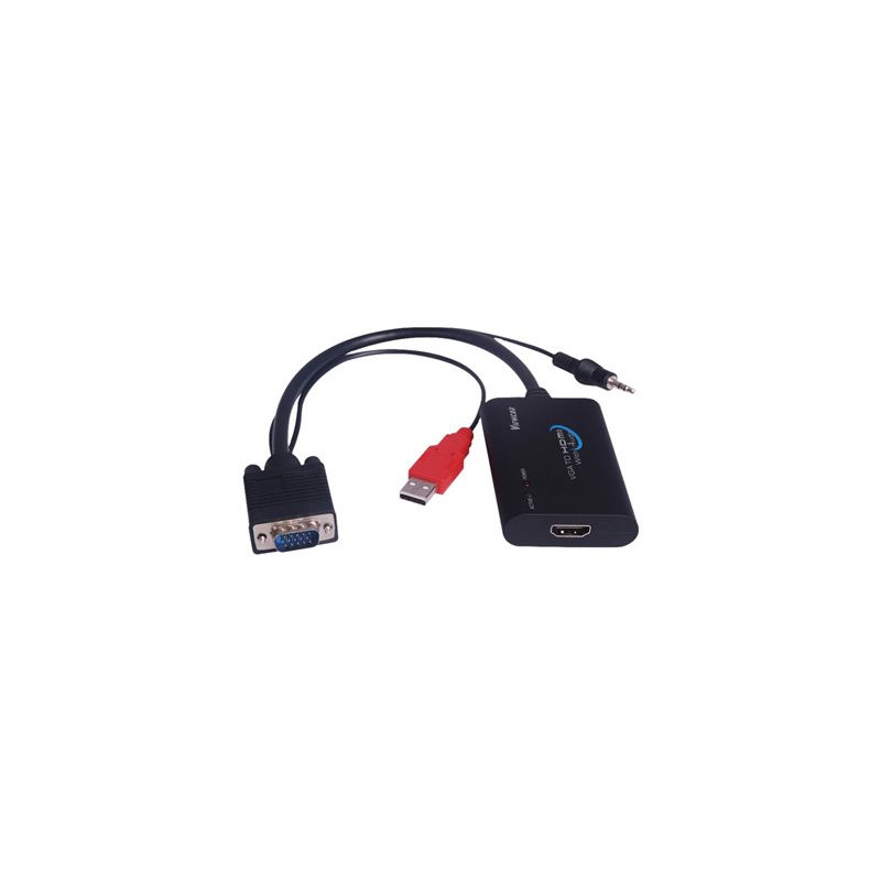 - Vstupy: VGA DB15HD male, AUDIO stereo jack 3,5mm male.