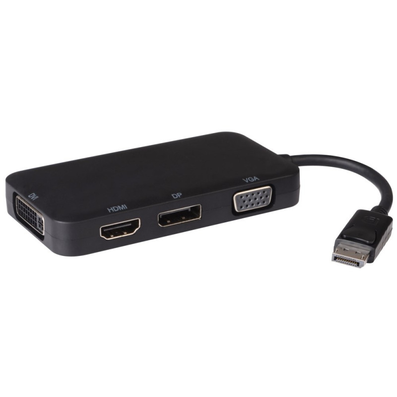Tento adaptér umožňuje propojit DisplayPort výstup s HDMI, DisplayPort, DVI nebo VGA vstupem na LCD nebo televizi