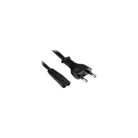 Napájecí kabel v černém provedení pro napájecí adaptér. Dvoužilový kabel je zakončený koncem v podobě ležaté osmičky.