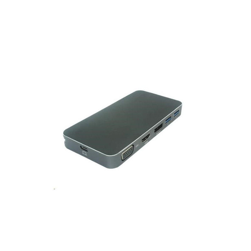 Tento adaptér umožňuje vysoce kvalitní převod videa a zvuku z USB 3.1 konektoru typu C současně na HDMI, VGA a DisplayPort konektor pro monitor/TV/projektor. Funguje jako externí grafická karta s výstupem HDMI, VGA a DP. Je možné zapojit monitor na oba grafické výstupy současně. Umožňuje připojit další USB zařízení a nabíjet přes PD konektor.