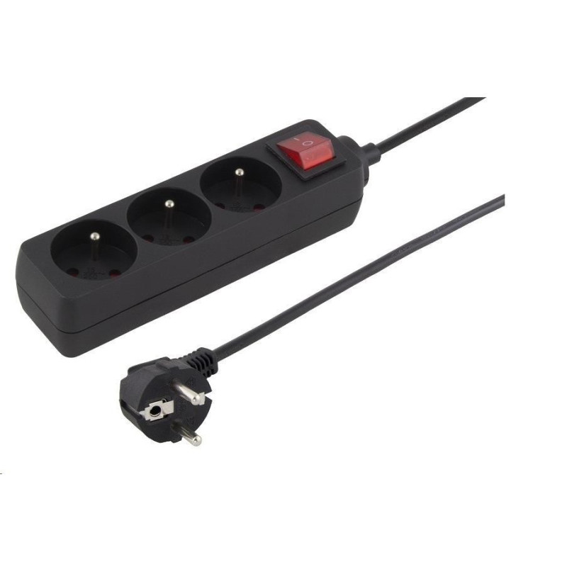 PREMIUMCORD Prodlužovací přívod 230V 2m 3 zásuvky + vypínač, černý