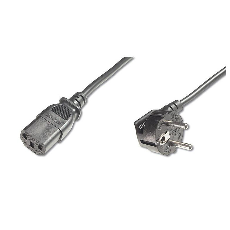 Napájecí kabel v černém provedení pro počítač nebo monitor. Třížilový kabel je zakončený standardní přístrojovou zástrčkou.