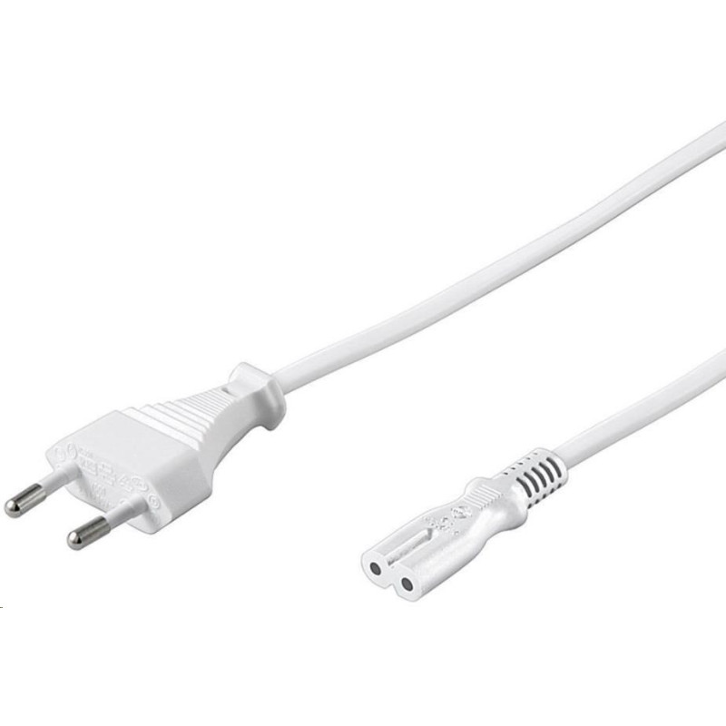 Napájecí kabel v černém provedení pro napájecí adaptér. Dvoužilový kabel je zakončený koncem v podobě ležaté osmičky.