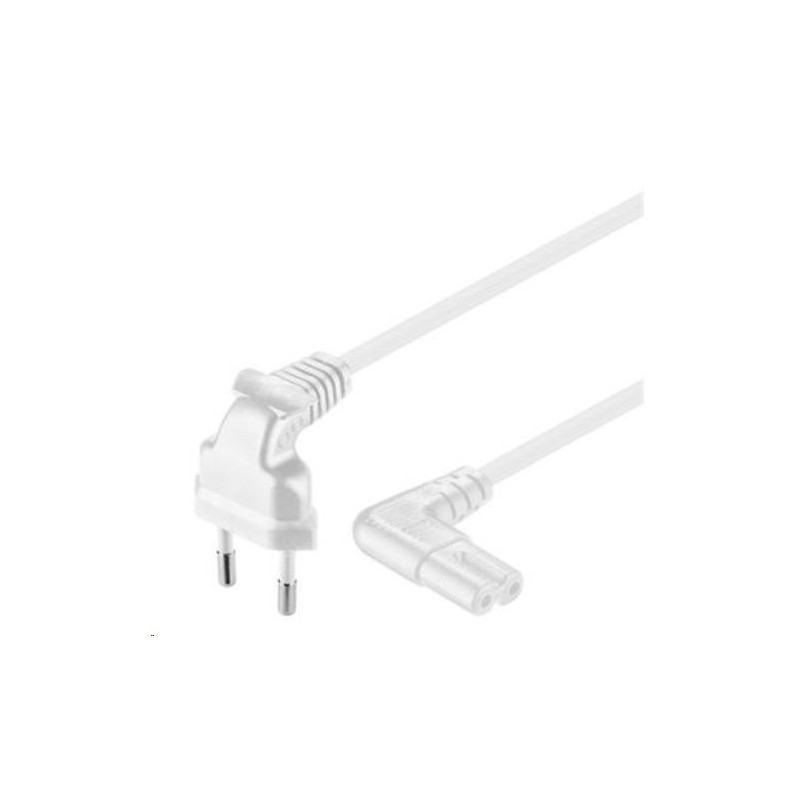 Napájecí kabel 230V v bílem provedení se zahnutými konektory 2m. Dvoužilový kabel je zakončený koncem v podobě ležaté osmičky.