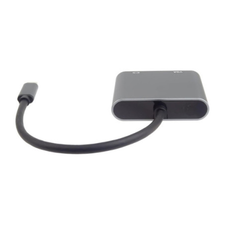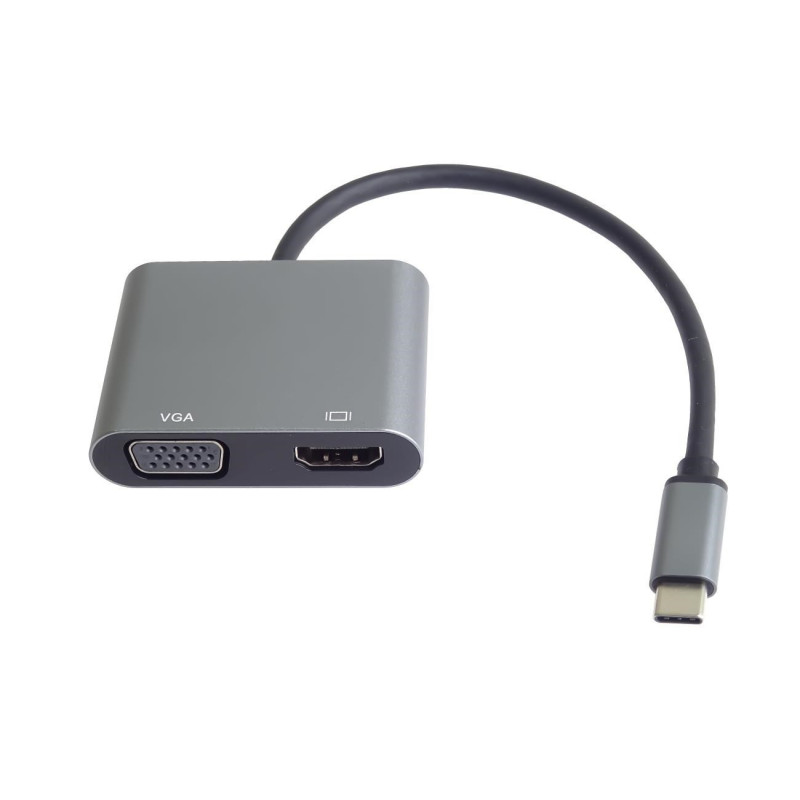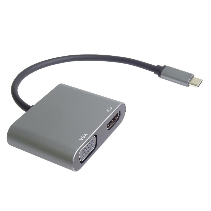 Tento adaptér umožňuje vysoce kvalitní převod videa a zvuku z USB-C konektoru na HDMI a VGA konektor pro dva monitory/TV/projektory. Funguje jako externí grafická karta s dvěma výstupy.