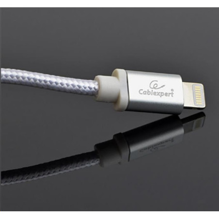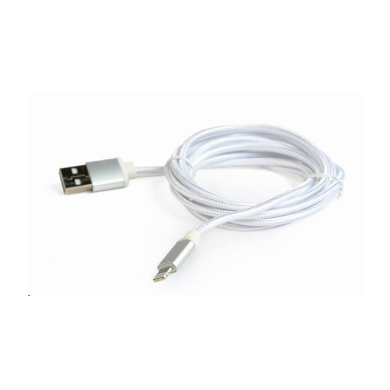 Cotton braided 8-pin cable with metal connectors, 1.8 m, silver color, blister