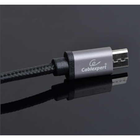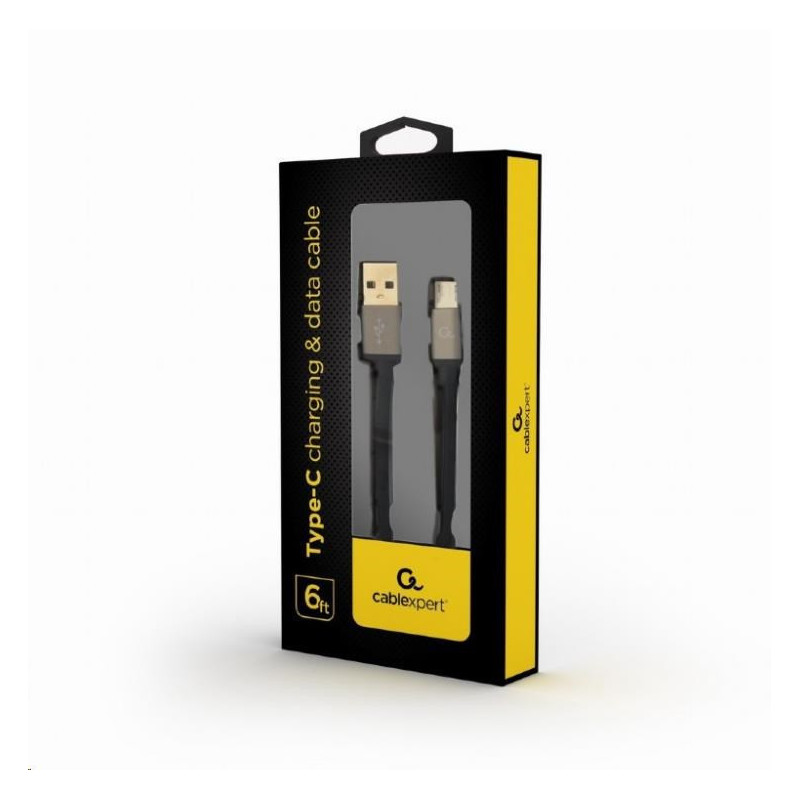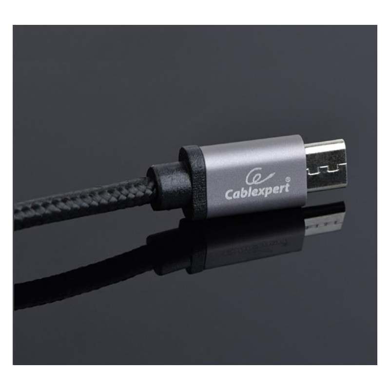 Cotton braided Micro-USB cable with metal connectors, 1.8 m, black, blister