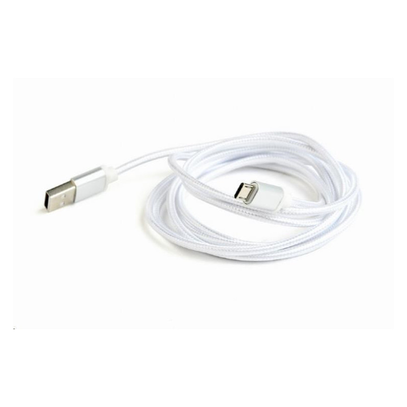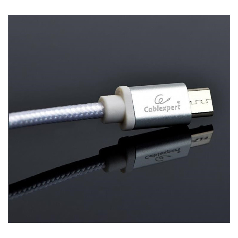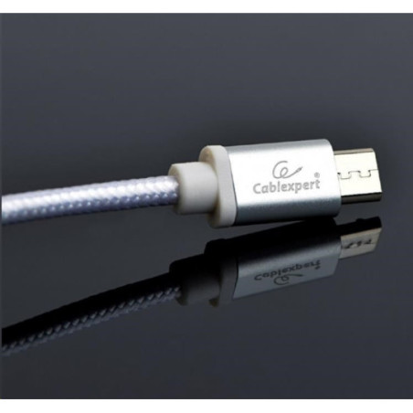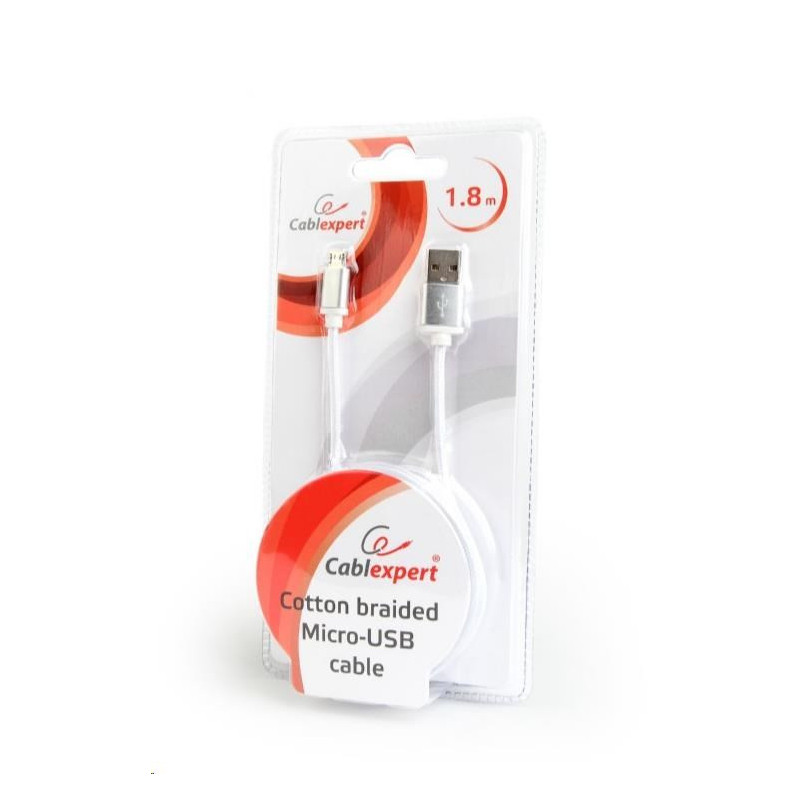 Cotton braided Micro-USB cable with metal connectors, 1.8 m, silver color, blister