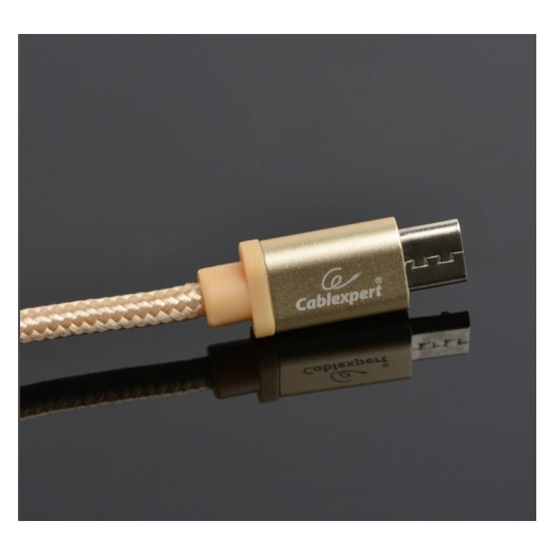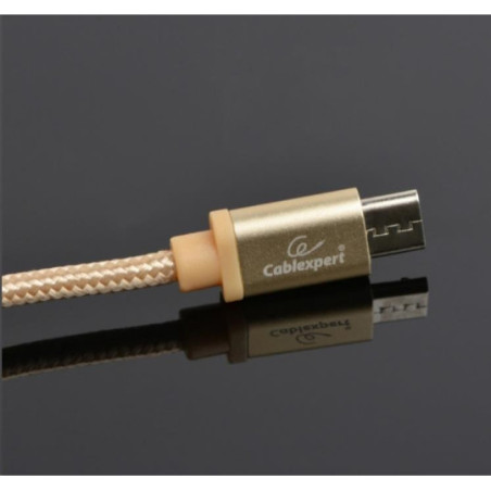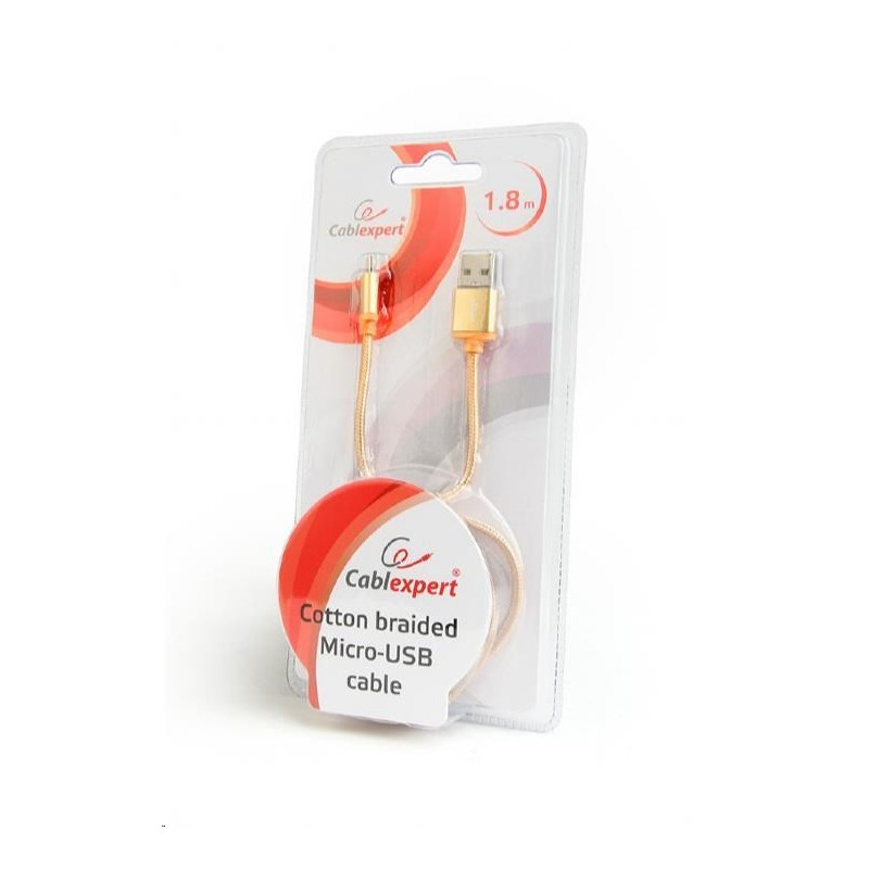 Cotton braided Micro-USB cable with metal connectors, 1.8 m, gold color, blister