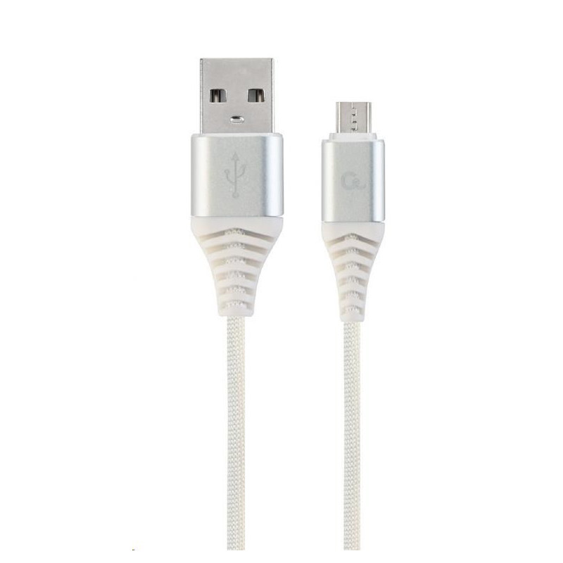 Premium cotton braided Micro-USB charging and data cable, 1 m, silver/white