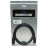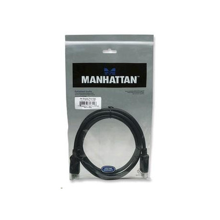 MANHATTAN DisplayPort Cables provide a single-cable solution that delivers both high-definition digital audio and video signals between desktop and notebook computers and an output device. With 10.8 Gbps bandwidth (1080 Mbps), DeepColor and 24-bit, 8-channel uncompressed audio capability, the 20-pin connector is small, compact and ideal for use with DisplayPort-equipped computers, flat-panel displays, slim-profile devices and many consumer electronics including Blu-ray players and game consoles. Full foil and braided shielding, molded boots with strain relief, protective PVC jackets and gold-plated connections help MANHATTAN DisplayPort Cables provide maximum conductivity and clear, crisp signal transmissions with reduced EMI interference and distortion.