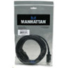 MANHATTAN DisplayPort Cables provide a single-cable solution that delivers both high-definition digital audio and video signals between desktop and notebook computers and an output device. With 10.8 Gbps bandwidth (1080 Mbps), DeepColor and 24-bit, 8-channel uncompressed audio capability, the 20-pin connector is small, compact and ideal for use with DisplayPort-equipped computers, flat-panel displays, slim-profile devices and many consumer electronics including Blu-ray players and game consoles. Full foil and braided shielding, molded boots with strain relief, protective PVC jackets and gold-plated connections help MANHATTAN DisplayPort Cables provide maximum conductivity and clear, crisp signal transmissions with reduced EMI interference and distortion.