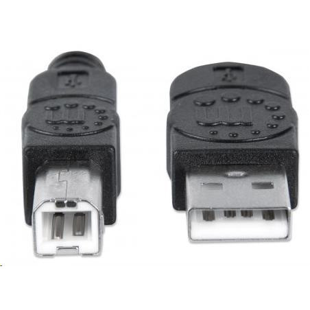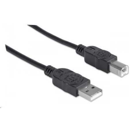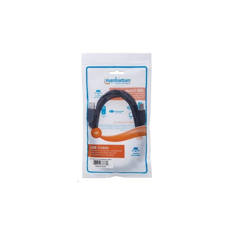 Manhattan Hi-Speed USB 2.0 Device Cables easily connect USB peripherals and accessories with desktop and notebook computers. Ideal for use with many USB external enclosures, hubs and other hot-swap, plug-and-play devices, Manhattan Hi-Speed USB 2.0 Device Cables support data transfer rates up to 480 Mbps on Windows and Mac systems for fast, reliable transmissions. Gold-plated contacts, shielding and fully molded boots with strain relief help provide dependable connections, maximum conductivity and minimal data loss with reduced EMI interference.