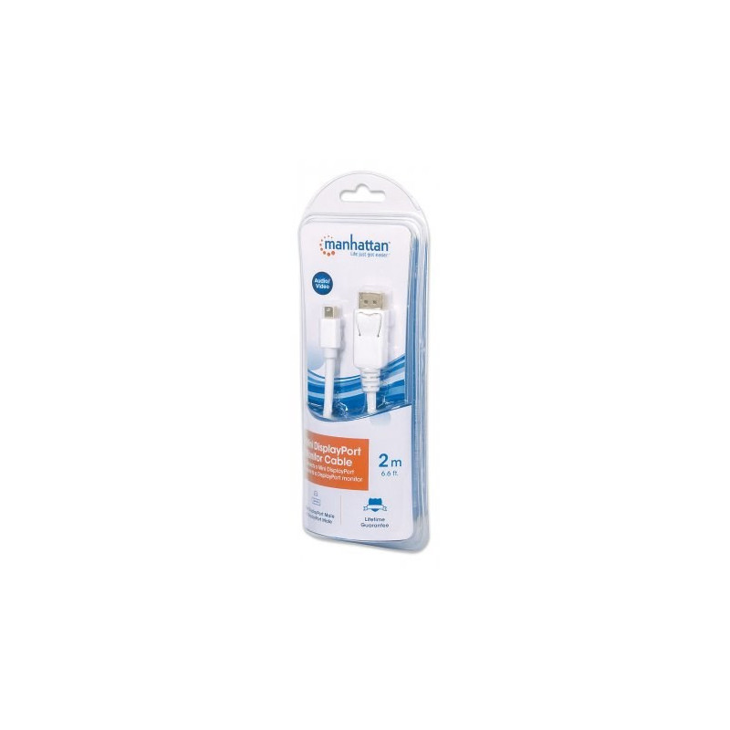 Manhattan Mini DisplayPort Cables provide a single-cable solution that delivers both high-definition digital audio and video signals between desktop and notebook computers and an output device. With 10.8 Gbps bandwidth (1080 Mbps), DeepColor and 24-bit, eight-channel uncompressed audio capability, the 20-pin connector is small, compact and ideal for use with Mini DisplayPort-equipped devices, flat-panel displays, slim-profile devices and many future consumer electronics. Full foil-and-braided shielding, molded boots with strain relief, protective PVC jackets and gold-plated connections help Manhattan Mini DisplayPort Cables provide maximum conductivity and clear, crisp signal transmissions with reduced EMI interference and distortion.