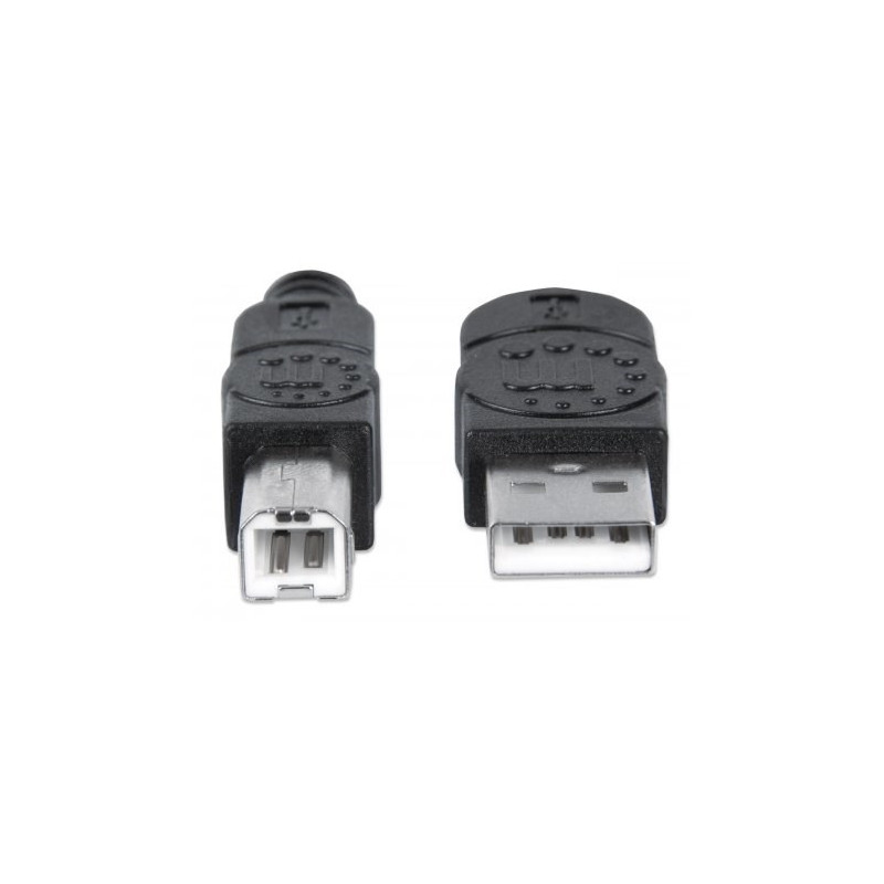 MANHATTAN Hi-Speed USB 2.0 Device Cables easily connect USB peripherals and accessories with desktop and notebook computers. Ideal for use with many USB external enclosures, hubs and other hot-swap, Plug and Play devices, MANHATTAN Hi-Speed USB 2.0 Device Cables support data transfer rates up to 480 Mbps on Windows and Mac systems for fast, reliable transmissions. Gold-plated contacts, shielding and fully molded boots with strain relief help provide dependable connections, maximum conductivity and minimal data loss with reduced EMI interference.