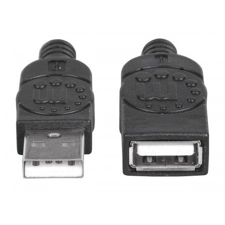 MANHATTAN Hi-Speed USB 2.0 Extension Cables easily lengthen connections between computers and USB-powered peripherals. Ideal for use with printers, keyboards, external enclosures and an expanding assortment of digital devices, MANHATTAN Hi-Speed USB 2.0 Extension Cables are engineered and constructed of quality materials that support data transfer rates up to 480 Mbps to deliver dependable, error-free transmissions over longer distances. Full foil and braided shielding, gold-plated contacts and molded boots with strain relief help assure maximum conductivity for the fast connection of USB-enabled devices with reduced EMI interference and minimal data degradation.