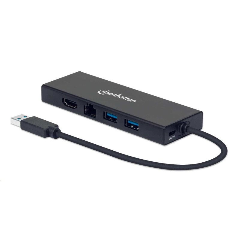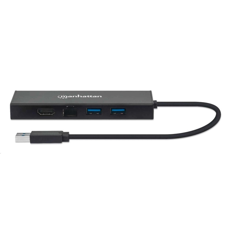The Manhattan SuperSpeed USB Dual Monitor Multiport Adapter is easy and quick to install. This adapter enhances the functionality of your USB device right when you connect it — there are no settings to configure or additional steps to get your devices working with it. Its design gives you a compact, complete solution that eliminates unnecessary cables, tangles and clutter to keep your workspace neat and tidy.