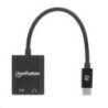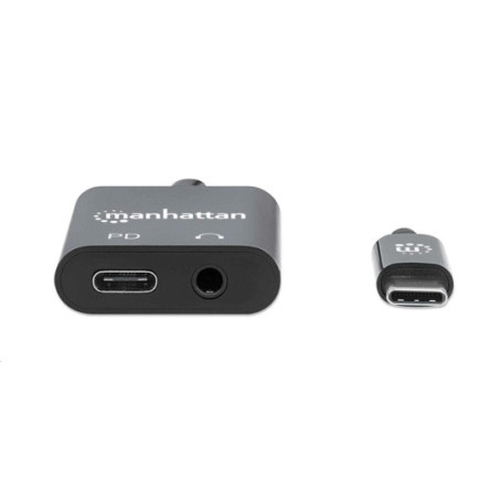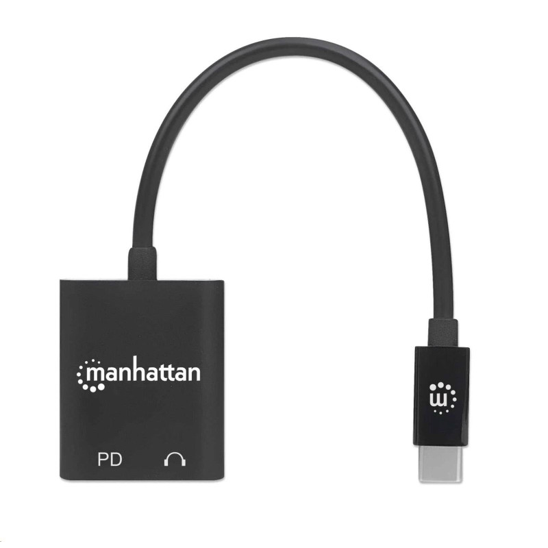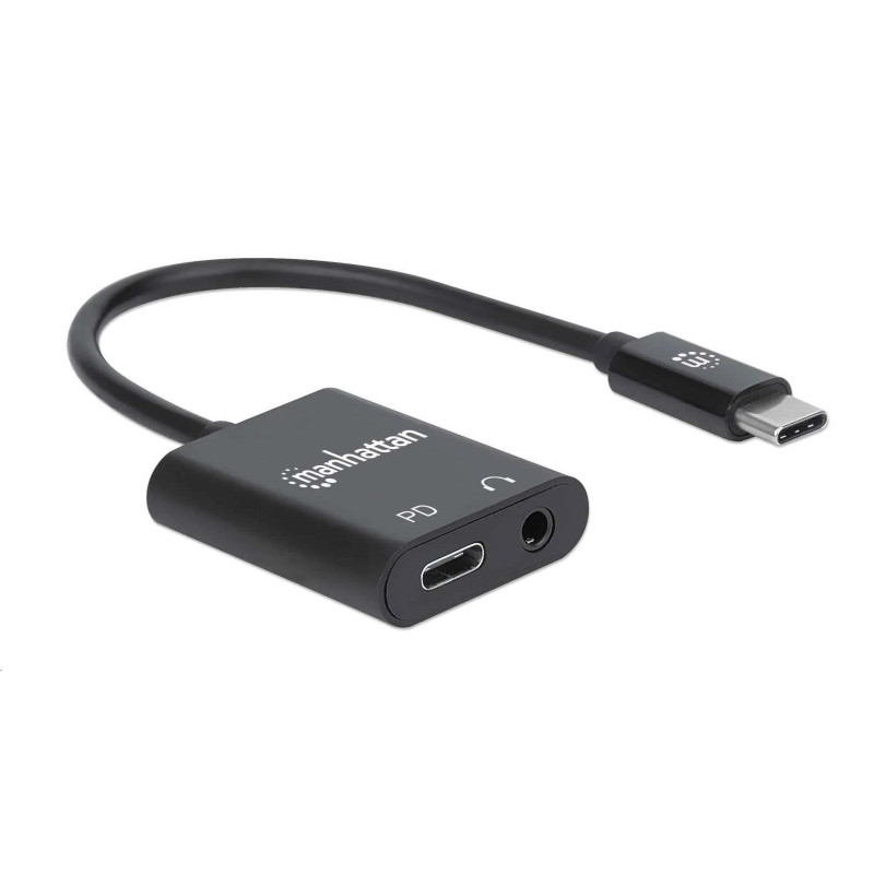 Is your slimmed-down computer missing a headphone jack? Add one and get plenty of power for all your attached devices with the Manhattan USB-C to Headphone Jack Adapter. Simply connect it to your computer's USB-C port, connect your computer's charging cable to the Power Delivery port on the adapter, and plug in your headphones. The adapter's Power Delivery technology charges your computer and all the devices it connects to so you can listen to music, your favorite podcast or media program while you get work done. The jack also supports audio input if your headphone cable has a built-in mic so you can be heard and understood better in your online communications. Improve your productivity and get the audio connection you need with this headphone jack adapter.