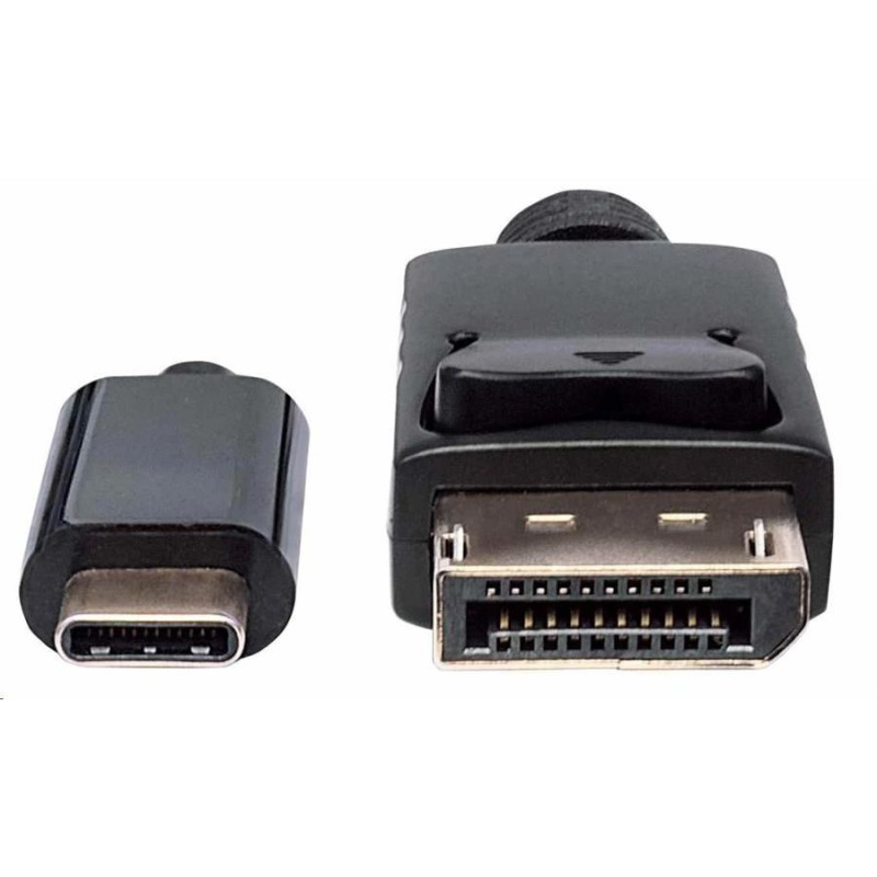 The Manhattan USB-C to DisplayPort Adapter Cable transmits a USB audio/video signal to a DisplayPort projector, flat-panel display, television or similar device. Built-in circuitry allows digital media enthusiasts to easily enjoy USB-based multimedia content on an Ultra High Definition (UHD) display or TV while maintaining simultaneous A/V reception at the source. Its UHD capability supports up to 3840x2160@60Hz and 4K to serve a wide range of resolutions in many devices and UHD applications including training, retail and trade show settings. Your source device must support DP Alt Mode. No additional setup is required. It effortlessly delivers digital content that's stored on a smartphone, tablet, Ultrabook or notebook computer to a display with DisplayPort input capabilities.