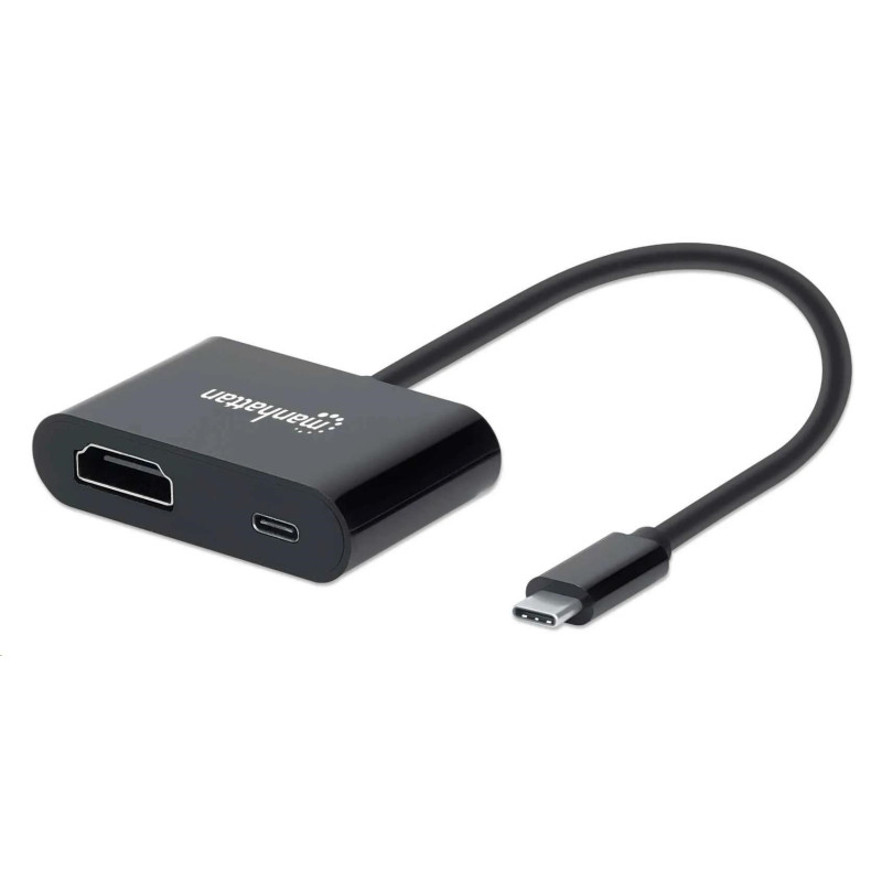 The Manhattan USB-C to HDMI Converter with PD Port lets you easily show content from your USB-C-equipped device on an existing HDMI display, monitor or projector. This converter is easy and quick to install — no settings or adjustments required. It is a compact yet powerful solution that helps avoid extra cables, tangles and clutter to keep workspaces neat and tidy.