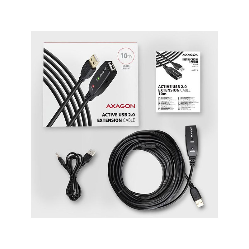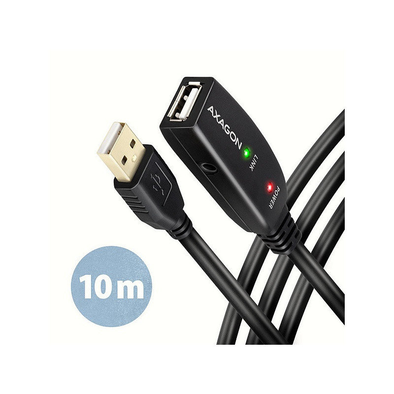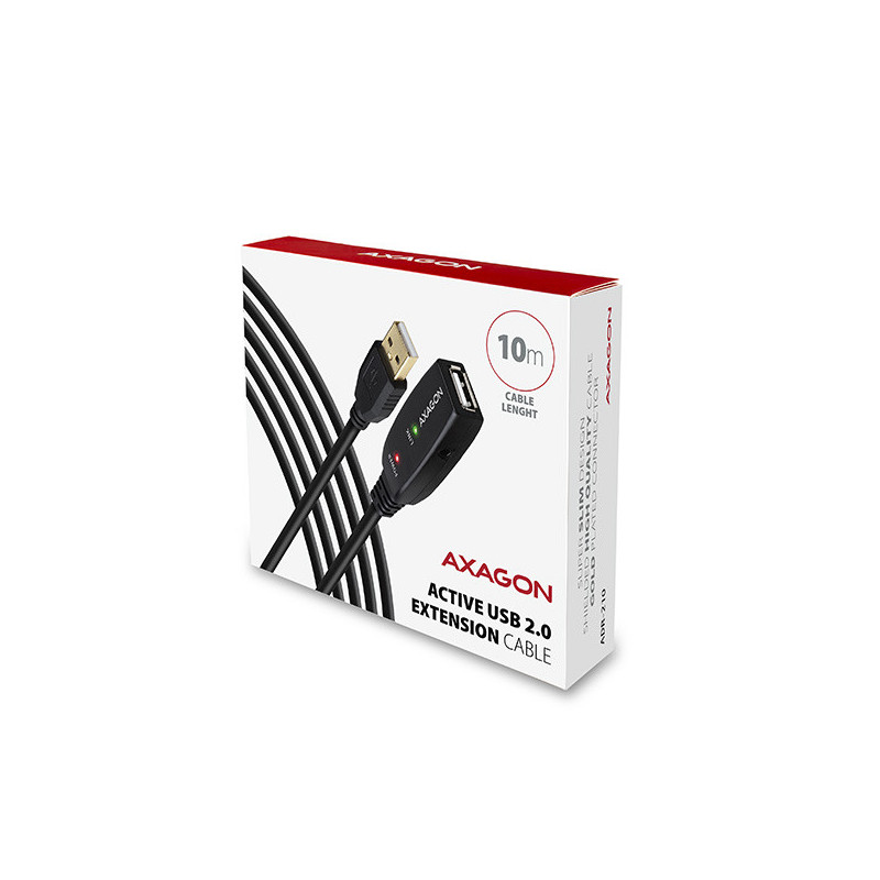 Aktivní prodlužovací USB 2.0 kabel AXAGON ADR-210 délky 10 metrů.