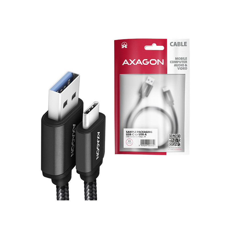 Prémiový propojovací USB-C <-> USB-A datový a nabíjecí AXAGON BUCM3-AM10AB SPEED USB 3.2 Gen 1 kabel s konektory USB-C male a USB-A male. Kabel je navržen pro rychlé datové přenosy a nabíjení notebooků, telefonů, tabletů a dalších mobilních zařízení. Podporuje přenos dat rychlostí až 5 Gb/s a nabíjení proudem až 3A.
