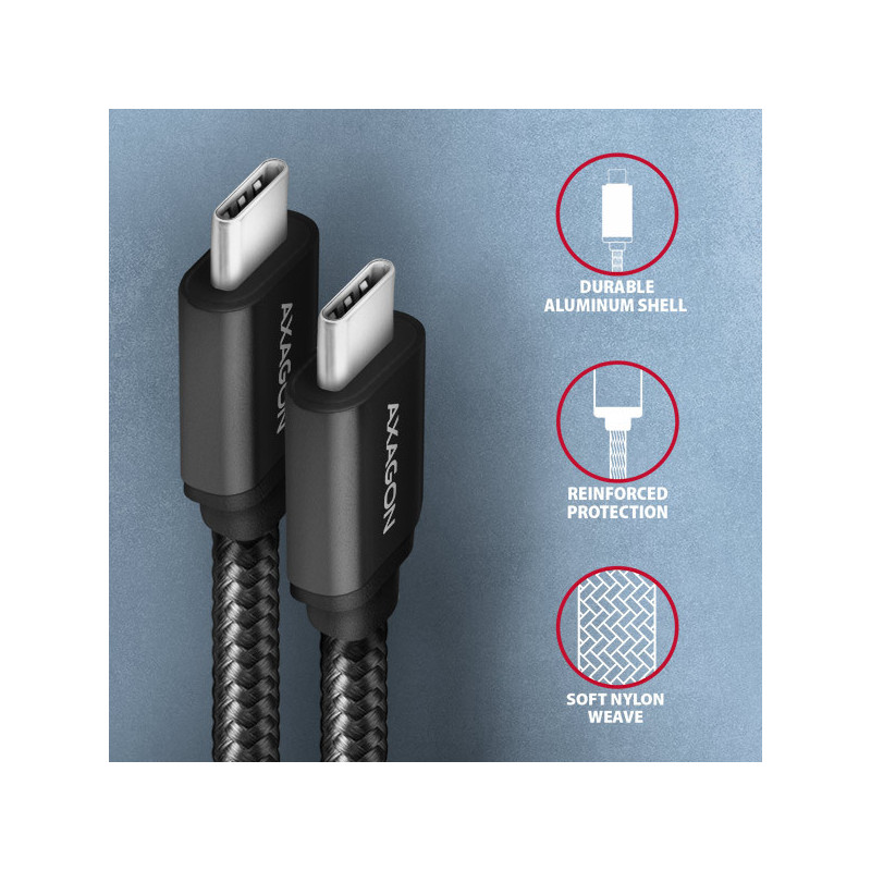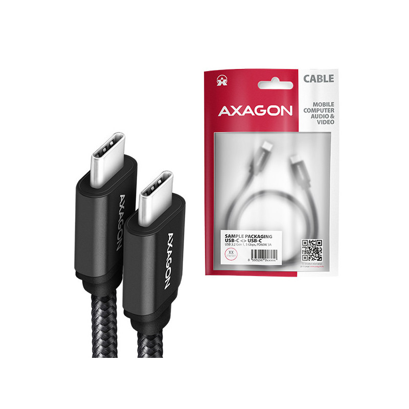 Prémiový propojovací USB-C <-> USB-C datový a nabíjecí AXAGON BUCM3-CM20AB SPEED USB 3.2 Gen 1 kabel s konektory USB-C male na obou koncích. Kabel je navržen pro rychlé datové přenosy a nabíjení notebooků, telefonů, tabletů a dalších mobilních zařízení. Podporuje přenos dat rychlostí až 5 Gb/s a nabíjení proudem až 3A.