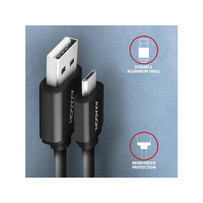 Kroucený propojovací Micro USB <-> USB-A datový a nabíjecí AXAGON BUMM-AM10TB TWISTER USB 2.0 kabel s konektory Micro USB male a USB-A male. Kabel je navržen pro synchronizaci dat a nabíjení telefonů, tabletů a dalších mobilních zařízení. Podporuje přenos dat rychlostí až 480 Mb/s a nabíjení proudem až 2.4A.