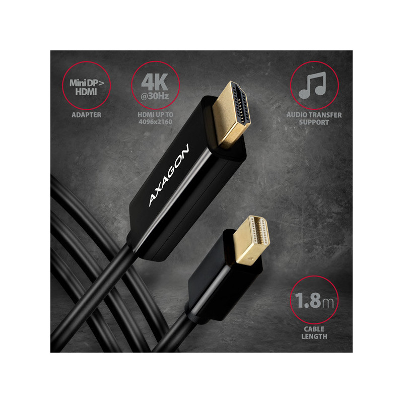 AXAGON RVDM-HI14C2, Mini DisplayPort -- HDMI 1.4 redukce / kabel 1.8 m, 4K/30Hz