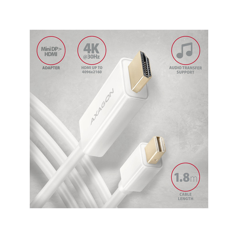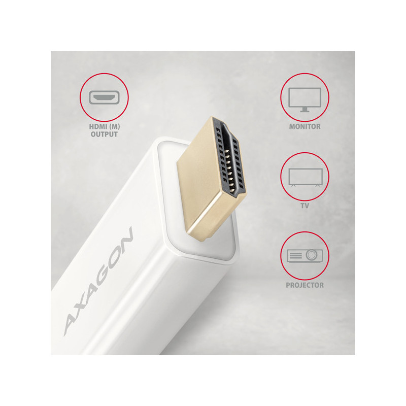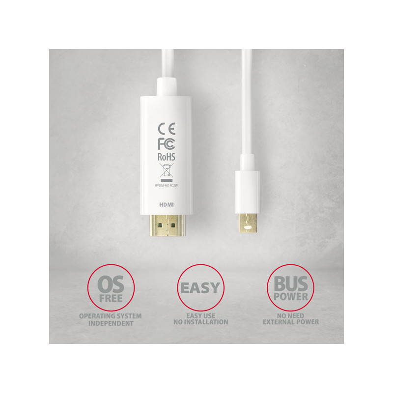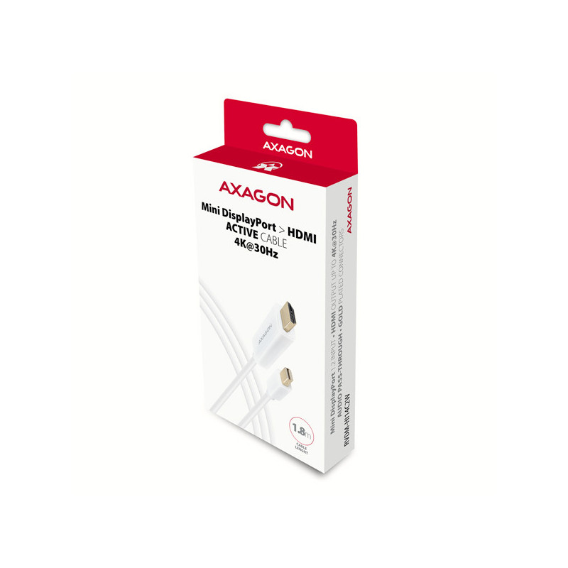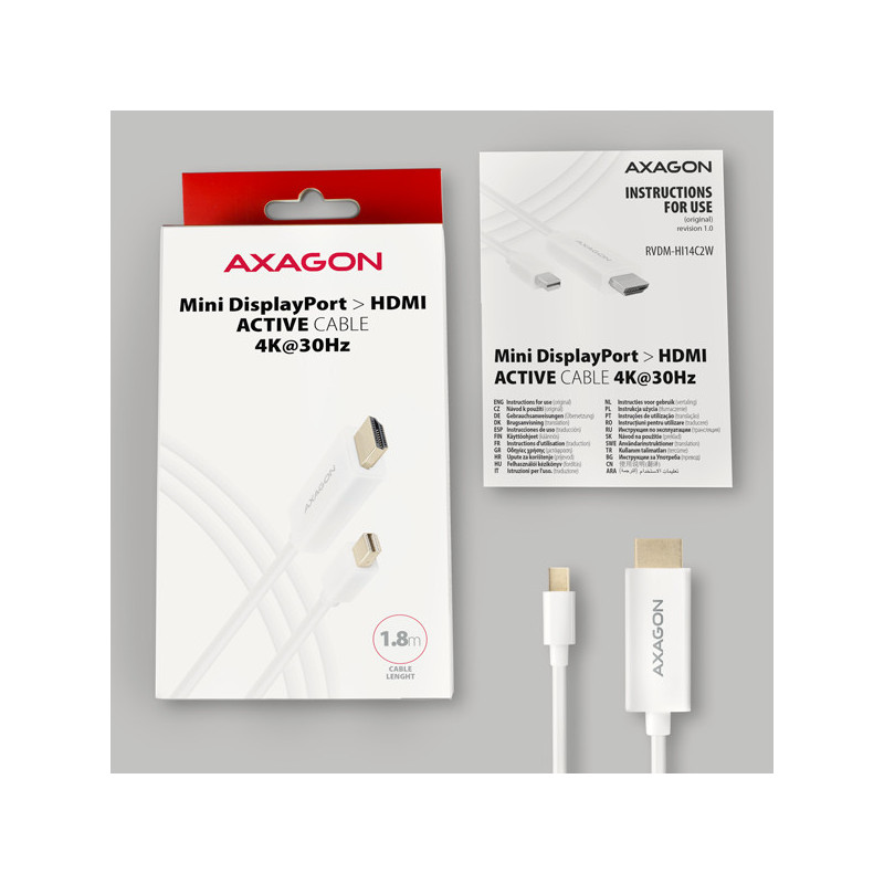 Mini DisplayPort -> HDMI aktivní kabel - redukce AXAGON RVDM-HI14C2W pro připojení HDMI monitoru/TV/projektoru k počítači s výstupem Mini DisplayPort.
