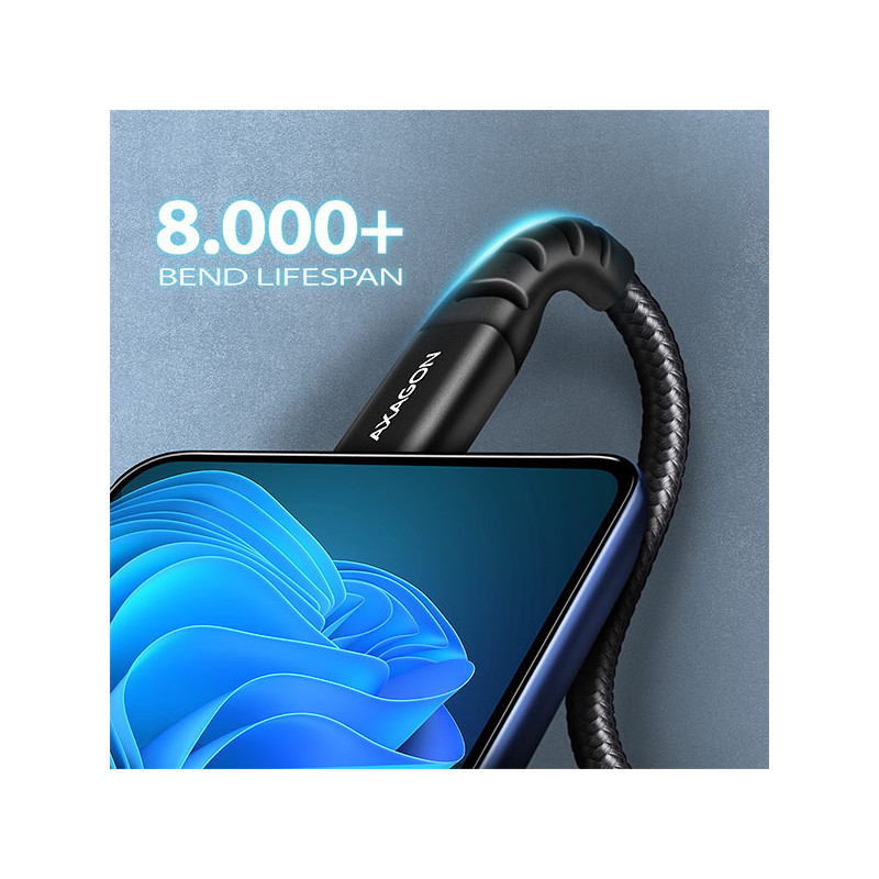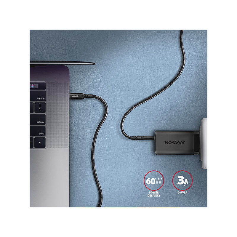 Napájecí vodiče 22AWG (nižší číslo = větší průřez a nižší odpor vodiče) garantují rychlé nabíjení telefonů a dalších mobilních zařízení. Kabel podporuje také nabíjení notebooků technologií Power Delivery 60W. Datové vodiče 30AWG spolu s kvalitním stíněním, zajišťují spolehlivý přenos dat. Dvojité stínění chrání přenášené signály před nepříznivým rušením.