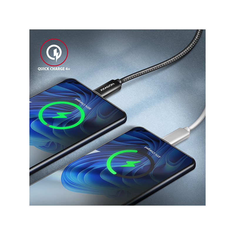 Vodiče kabelu jsou vyrobené z pocínované bezkyslíkaté mědi. Napájecí vodiče 22AWG (nižší číslo = větší průřez a nižší odpor vodiče) a datové vodiče 32AWG garantují rychlé nabíjení a spolehlivý přenos dat připojených zařízení. Kvalitní izolace kabelu, vyrobená z flexibilního TPE, zaručuje maximální odolnost, ale zachovává i dostatečnou ohebnost. Trojité stínění chrání přenášené signály před nepříznivým rušením.