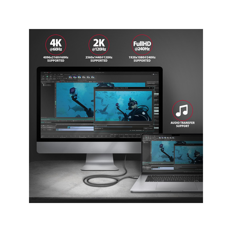Odolný kabel je opatřen pevnými kovovými koncovkami, konektory s poniklovaným povrchem a pozlacenými kontakty. Konečnou pevnost kabelu dodává nylonový oplet. Bonusem je praktická páska pro snadné sbalení kabelu. Přenos obrazu a zvuku z počítače, notebooku, telefonu nebo Apple MacBooku bude nyní hračkou.