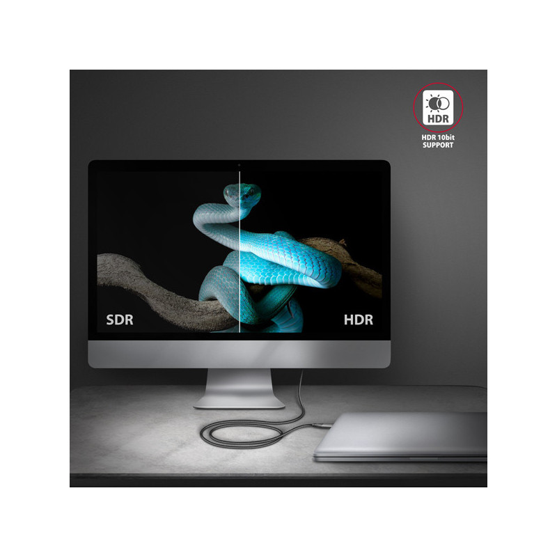 Hardwarový převodník bez potřeby jakékoliv instalace zajistí kvalitní obraz až do rozlišení 4K/60Hz Ultra HD. Podporována jsou také oblíbená herní rozlišení WQHD 2560 x 1440 při 60, 120 a 144 Hz nebo FullHD 1920 x 1080 při 60, 100, 120, 144 a 240 Hz. Díky podpoře HDR (vysoce dynamický rozsah) si můžete bez omezení vychutnat výrazně rozšířený rozsah barev a kontrastů.