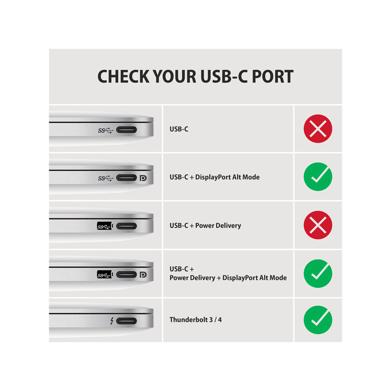 Kabel je pouze jednosměrný, tj. převodník z USB-C na HDMI, ne naopak. Pro správné fungování převodníku je nutný USB-C port s podporou DisplayPort Alternate Mode (DP Alt Mode) nebo zařízení s Thunderbolt 3/4 portem.