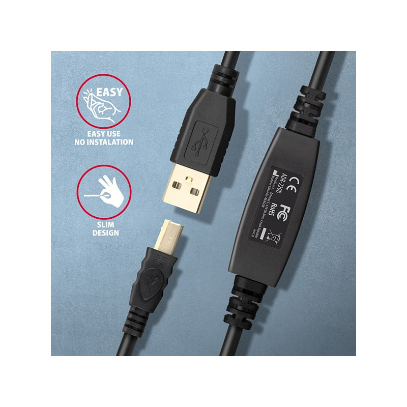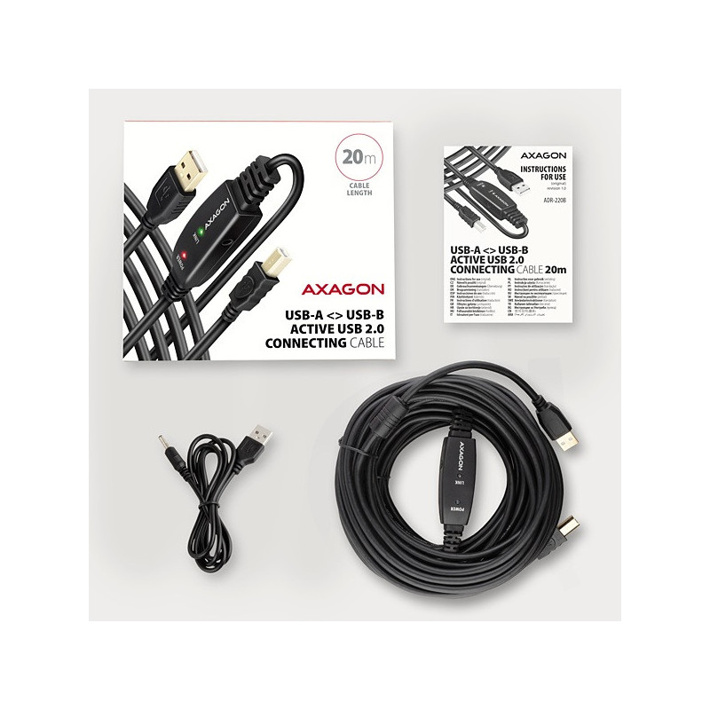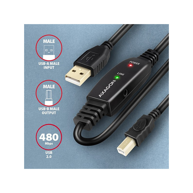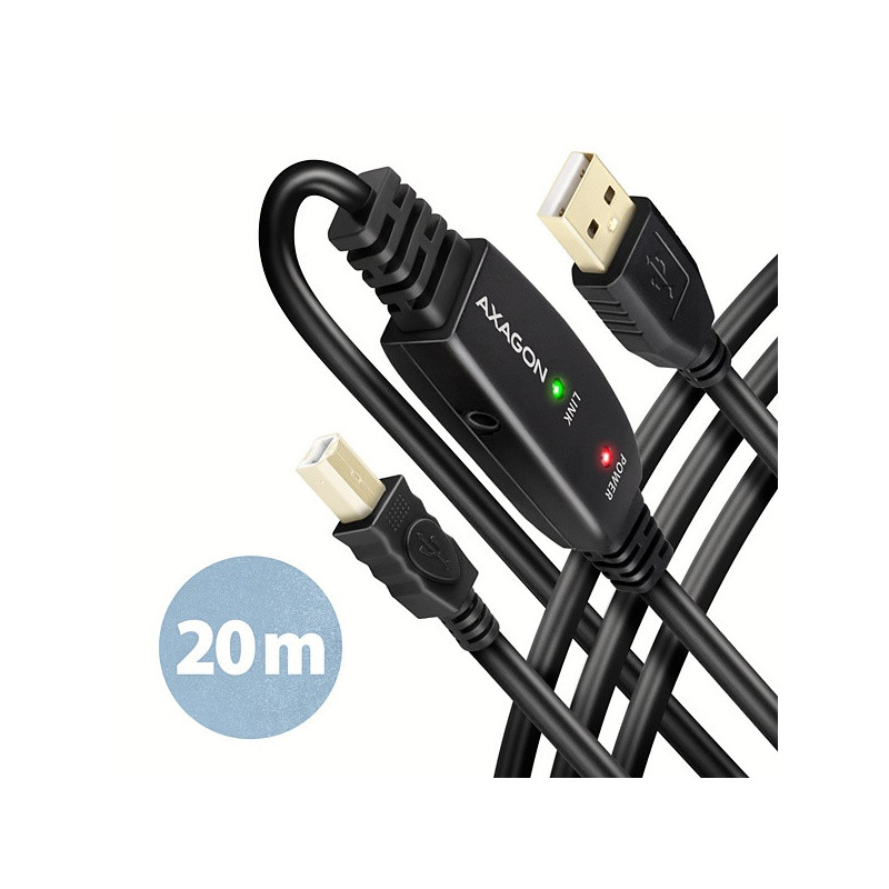 AXAGON ADR-220B, USB 2.0 A-M -- B-M aktivní propojovací / repeater kabel, 20m