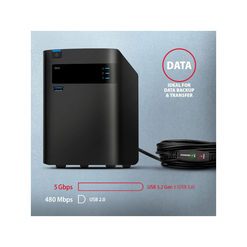 Díky použitému USB 3.2 Gen 1 (dříve USB 3.0) rozhraní si můžete užívat rychlost přenosu dat až 5 Gbps. Tak kabel využijete i na zařízení vyžadující větší rychlost jako jsou zálohovací systémy, datová úložiště NAS a další.