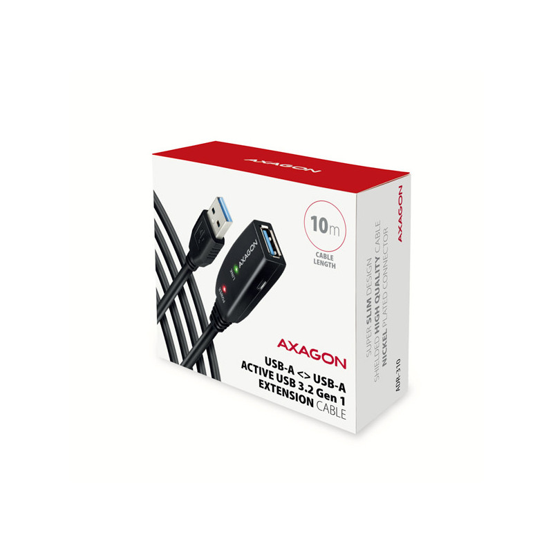 AXAGON ADR-310, USB 3.2 Gen 1 A-M -- A-F aktivní prodlužovací / repeater kabel, 10m